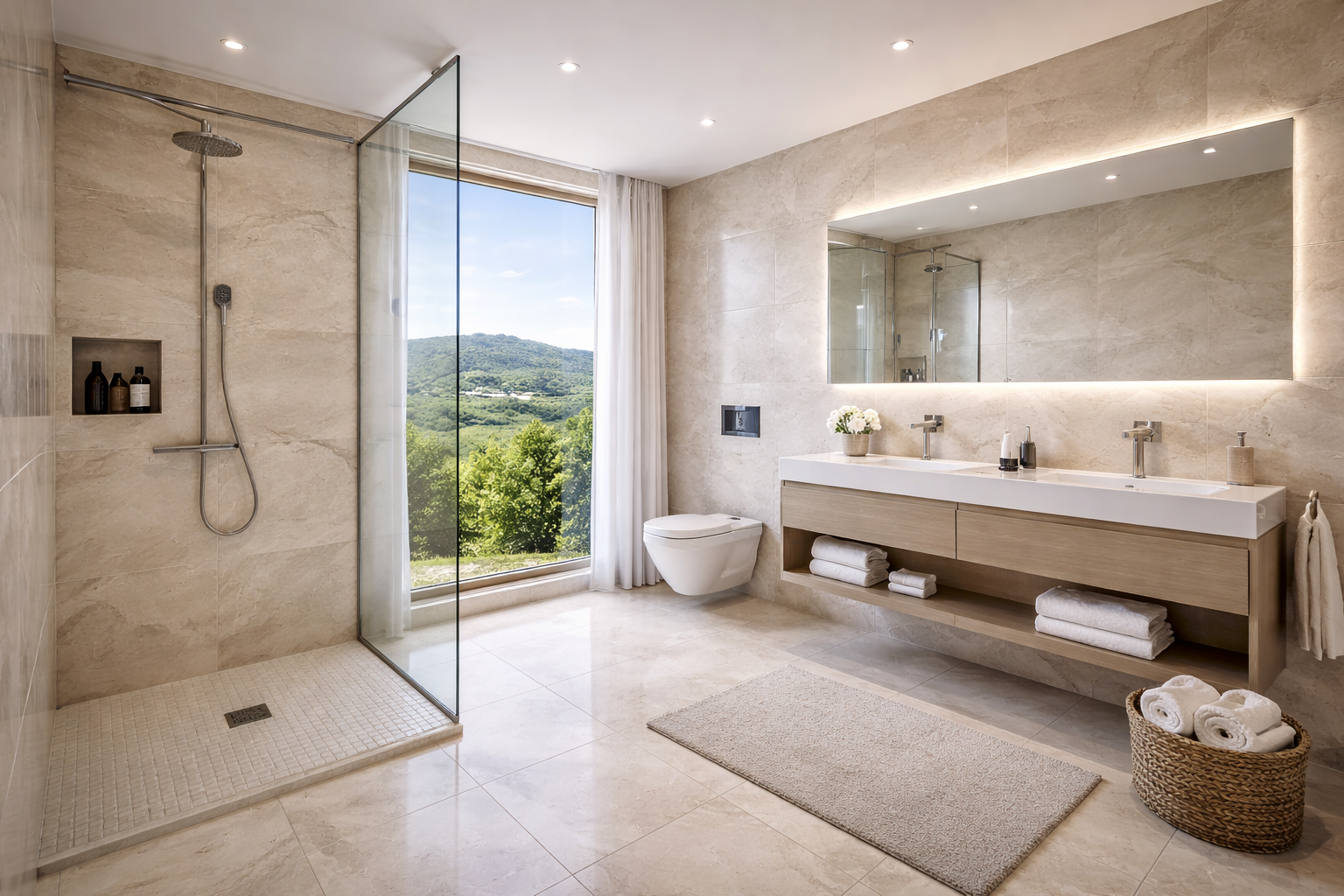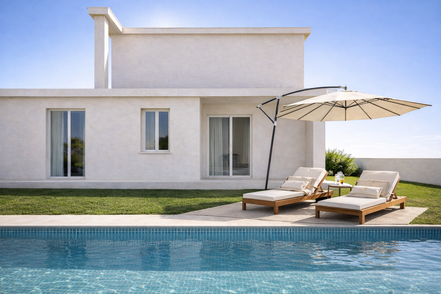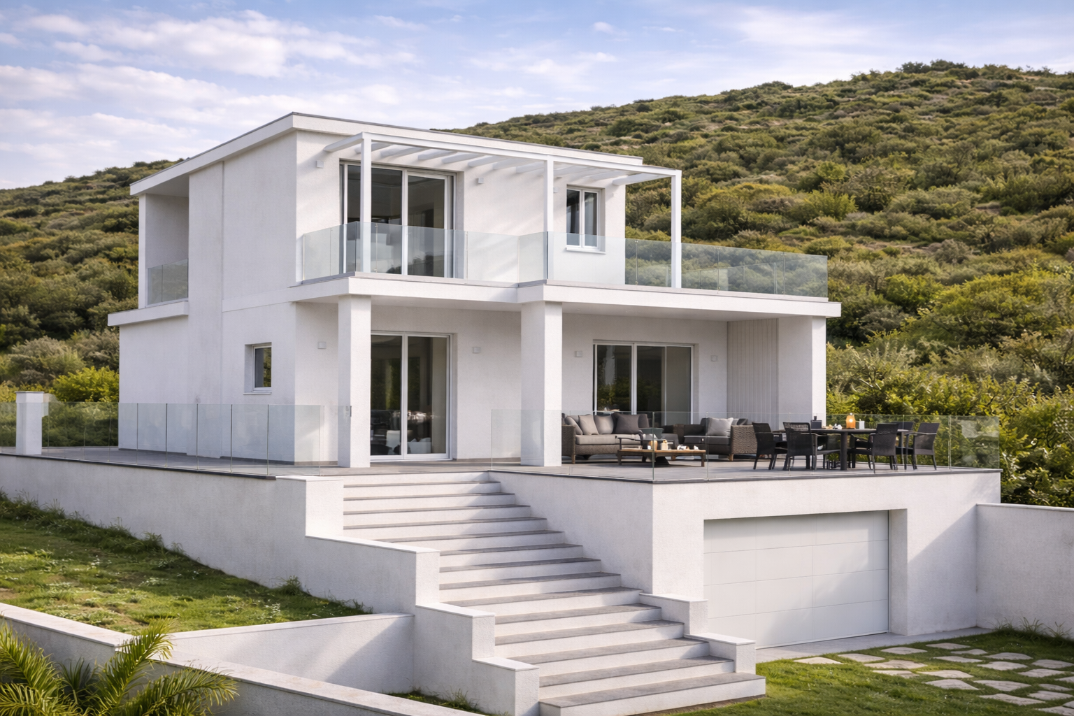Architektura kombinuje čisté moderní linie s tradičním středomořským stylem.